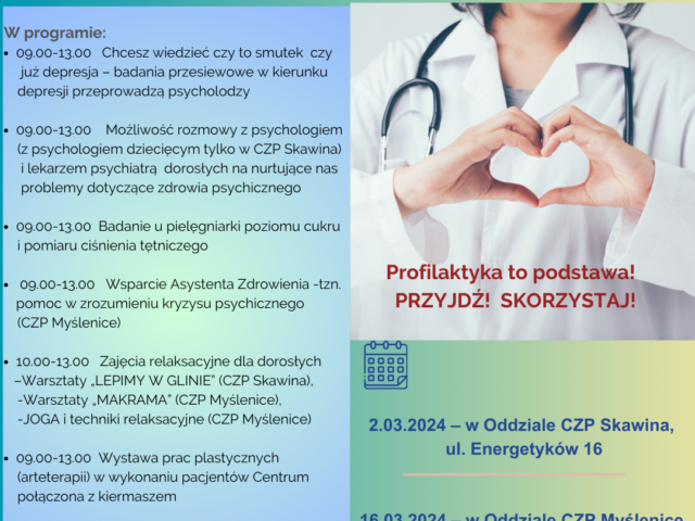 ZADBAJMY O NASZE ZDROWIE PSYCHICZNE W CZASIE „BIAŁYCH SOBÓT”ORGANIZOWANYCH PRZEZ SZPITAL BABIŃSKIEGO DLA MIESZKANCÓW MAŁOPOLSKIW DNIACH 2, 9 i 16 […]