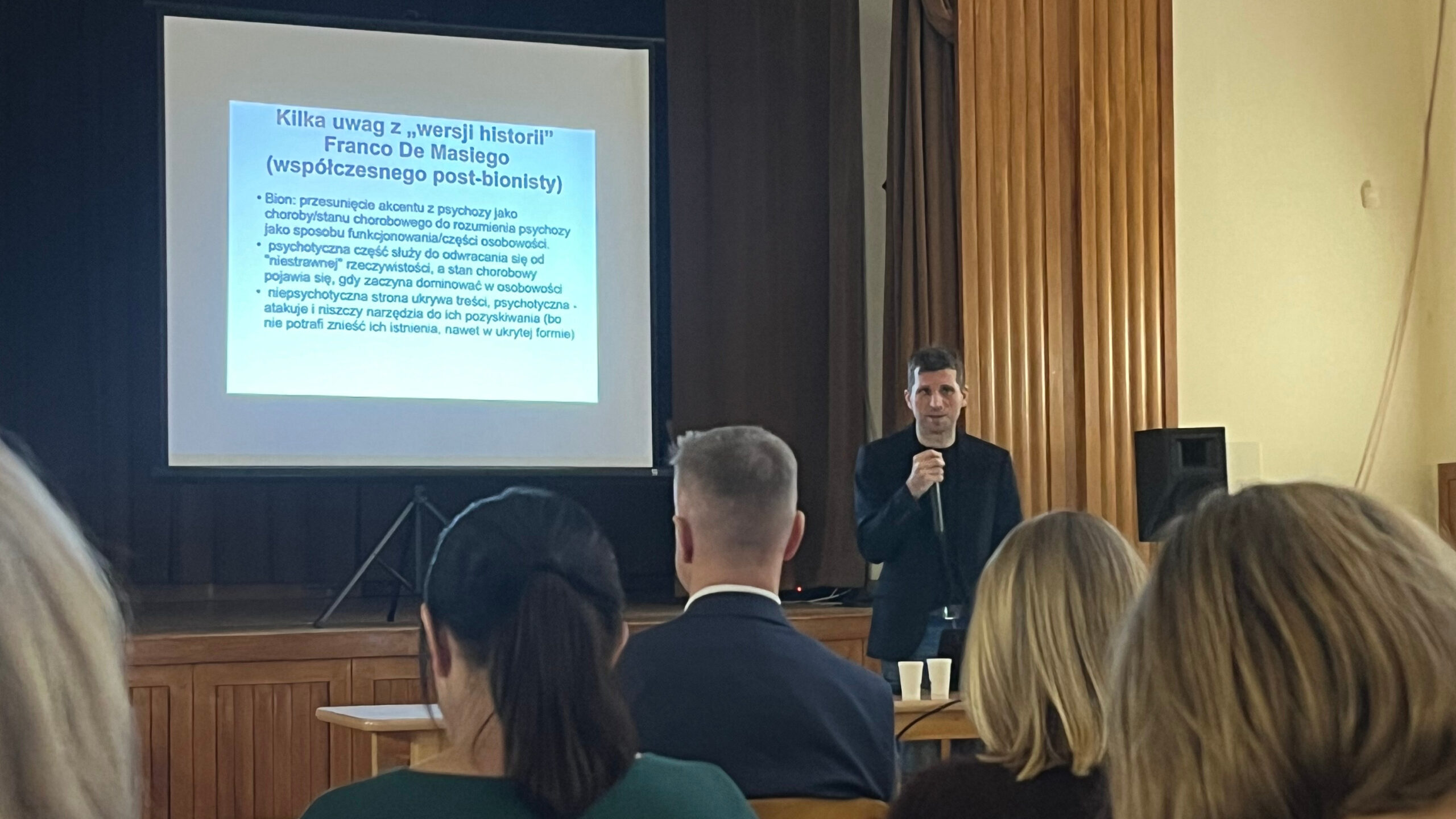 W swoim wykładzie dr Lech Kalita przedstawił w sposób niezwykle przejrzysty i precyzyjny różne koncepcje na temat rozumienia psychoz odwołując się nie tylko do teorii psychoanalitycznych, ale też do koncepcji filozoficznych. Był też czas na podzielenie się refleksjami oraz na uzyskanie odpowiedzi na nurtujące pytania.