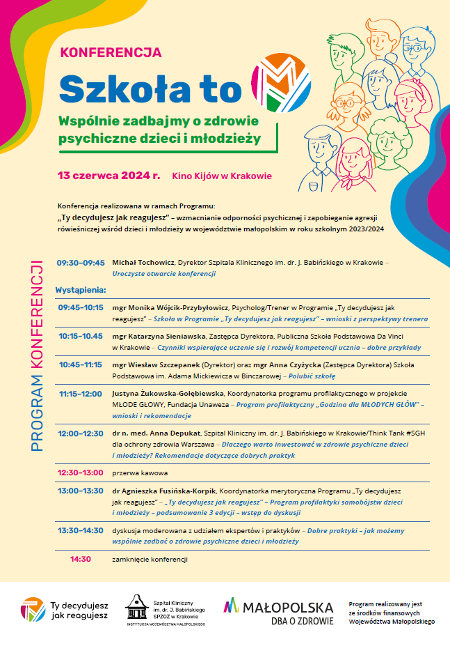 Konferencja jest realizowana w ramach Programu „Ty decydujesz jak reagujesz” wzmacnianie odporności psychicznej i zapobieganie agresji rówieśniczej wśród dzieci i młodzieży. Program realizowany jest ze środków finansowych Województwa Małopolskiego.
