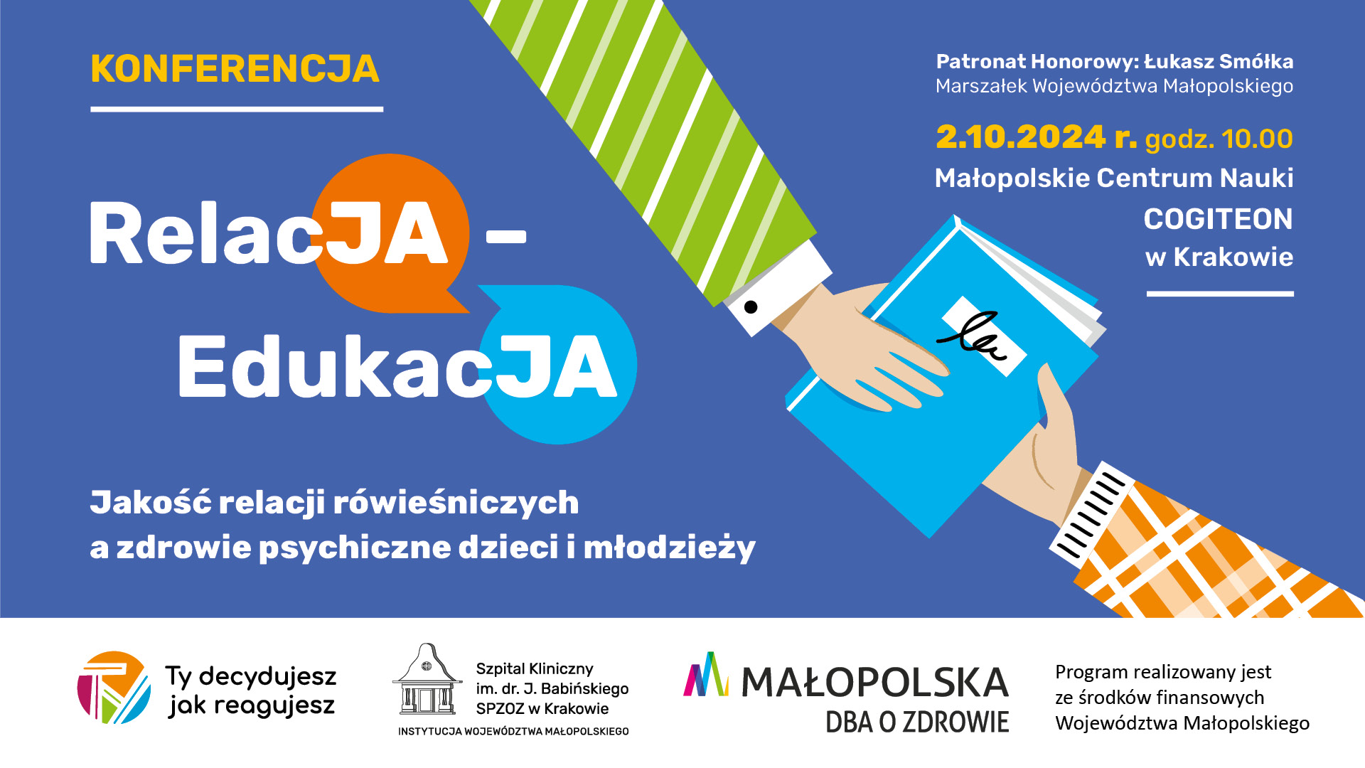 Konferencja otwiera IV edycję Programu „Ty decydujesz jak reagujesz”* – wzmacnianie odporności psychicznej i zapobieganie agresji rówieśniczej wśród dzieci i młodzieży w województwie małopolskim.