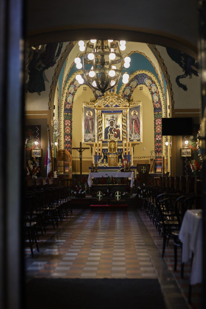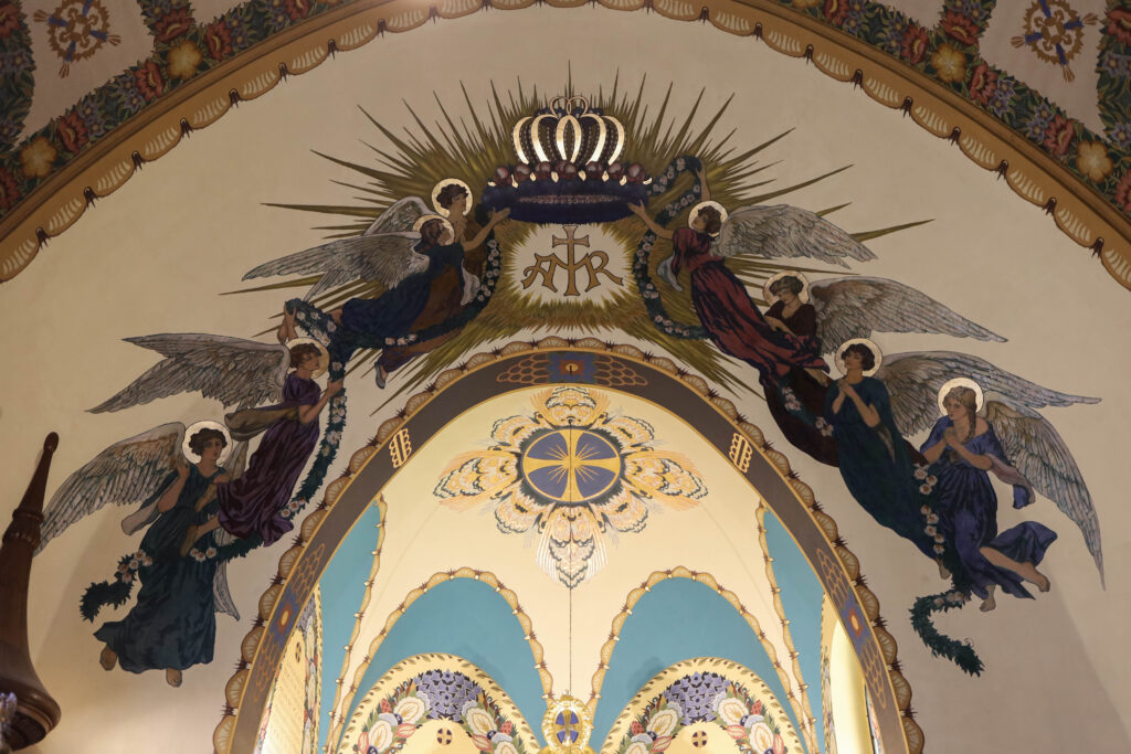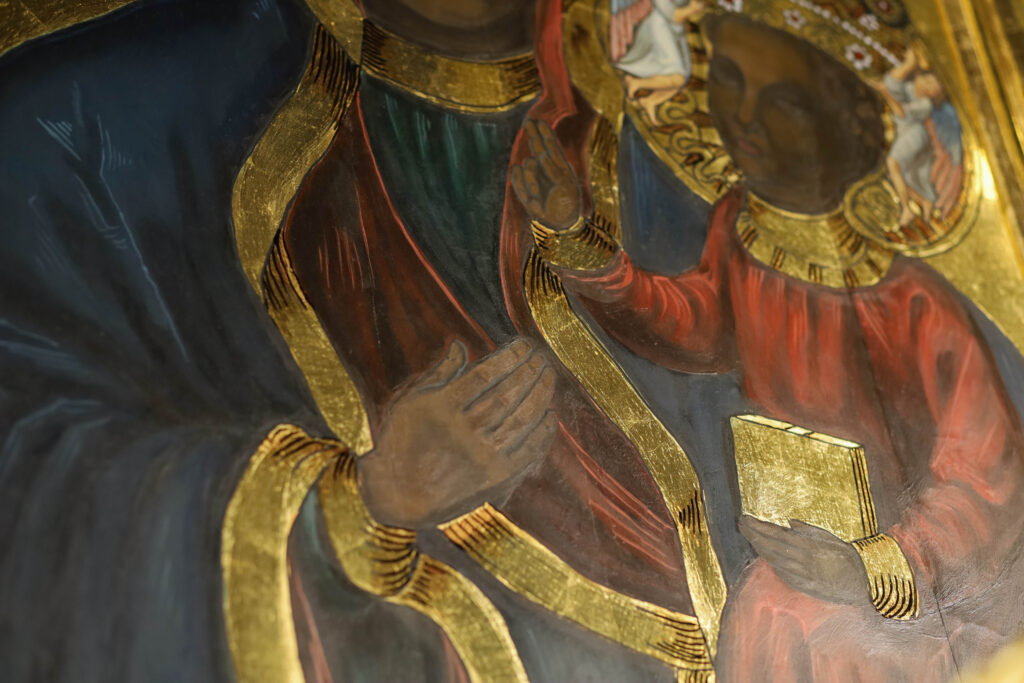 PATRONKI SZPITALNEJ KAPLICY NA STAŁE MIEJSCE POWRÓCĄ ODNOWIONY OŁTARZ I TABERNAKULUM, A UCZESTNICY PODZIWIAĆ BĘDĄ MOGLI TAKŻE ODNOWIONE MALOWIDŁA ŚCIENNE W PREZBITERIUM AUTORSTWA JANA BUKOWSKIEGO