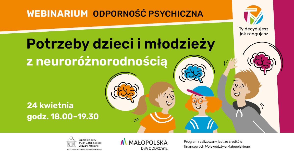 Zapraszamy na kolejny webinar z cyklu „Odporność psychiczna”, który odbędzie się 24 kwietnia 2024r. w godz. 18:00-19:30. Wydarzenie odbędzie się w formule online.