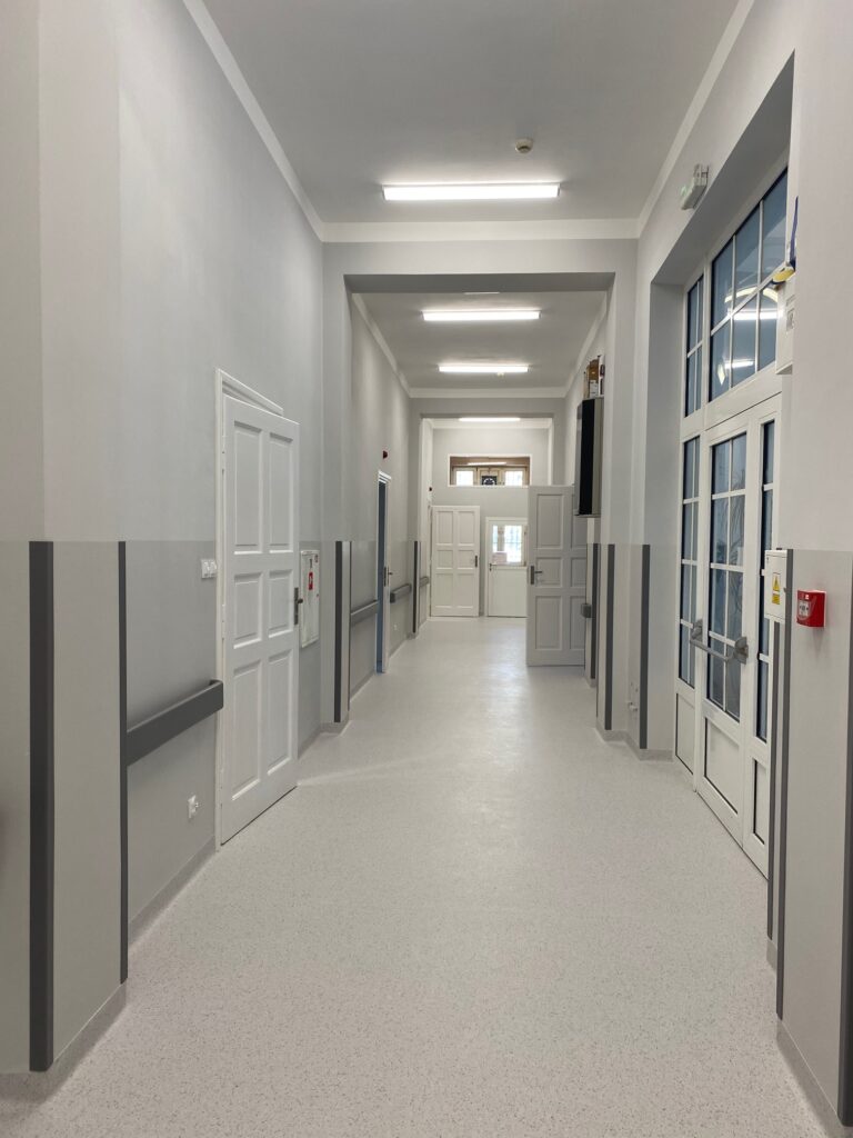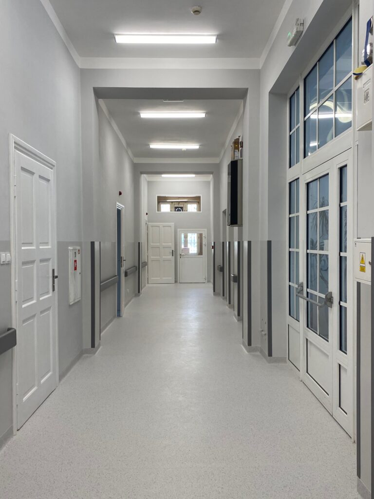 Wyremontowany Oddział jest częścią zadania inwestycyjnego w zakresie „Modernizacji i dostosowania pomieszczeń szpitalnych w budynku nr 7B do nakazów Państwowego Inspektora Sanitarnego, wymagań Rozporządzenia Ministra Zdrowia „w sprawie szczegółowych wymagań jakim powinny odpowiadać pomieszczenia i urządzenia podmiotu wykonującego działalność leczniczą” oraz innych przepisów.”