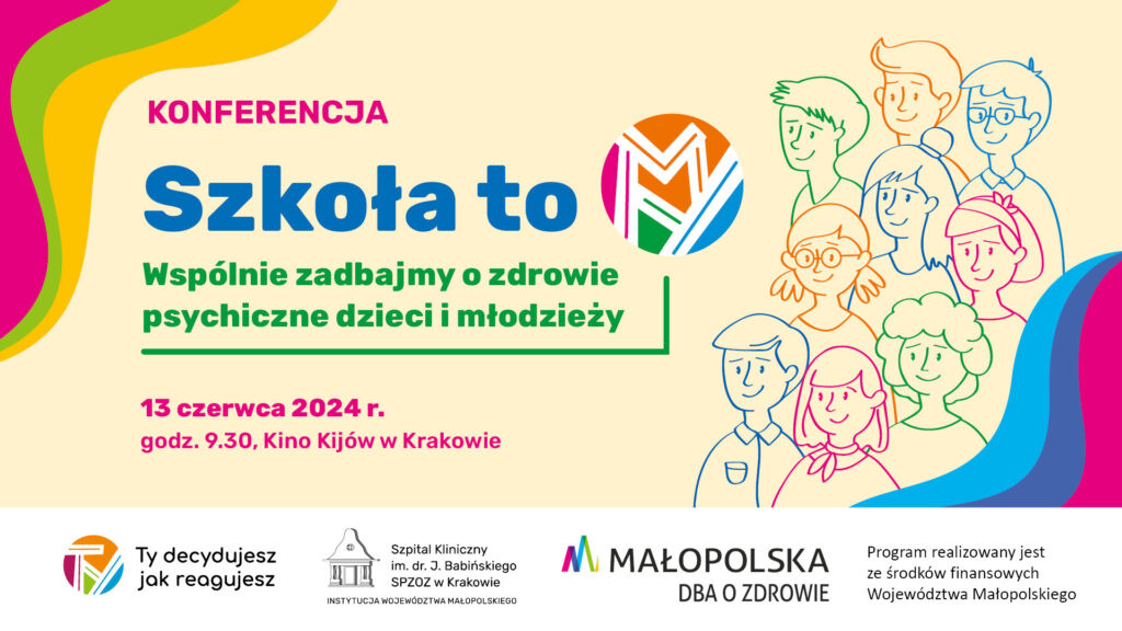 Konferencja „Szkoła to MY – wspólnie zadbajmy o zdrowie psychiczne dzieci i młodzieży” podsumowuje realizację III edycji Programu „Ty decydujesz jak reagujesz”, który wzmacniania odporność psychiczną i ma zapobiegać agresji rówieśniczej wśród dzieci i młodzieży w Województwie Małopolskim.